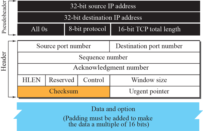 Pseudoheader added to the TCP segment