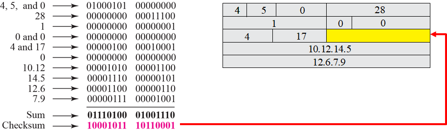 Example of checksum calculation at the sender