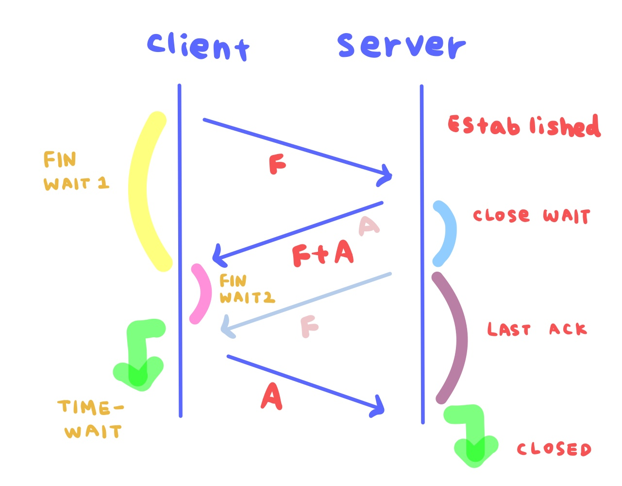 ACK 클라이언트로부터 FIN요청에 대한 ACK를 받음