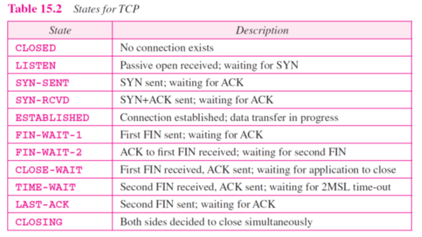 * CLOSED: client / server의 송수신 버퍼가 모두 삭제된 상태