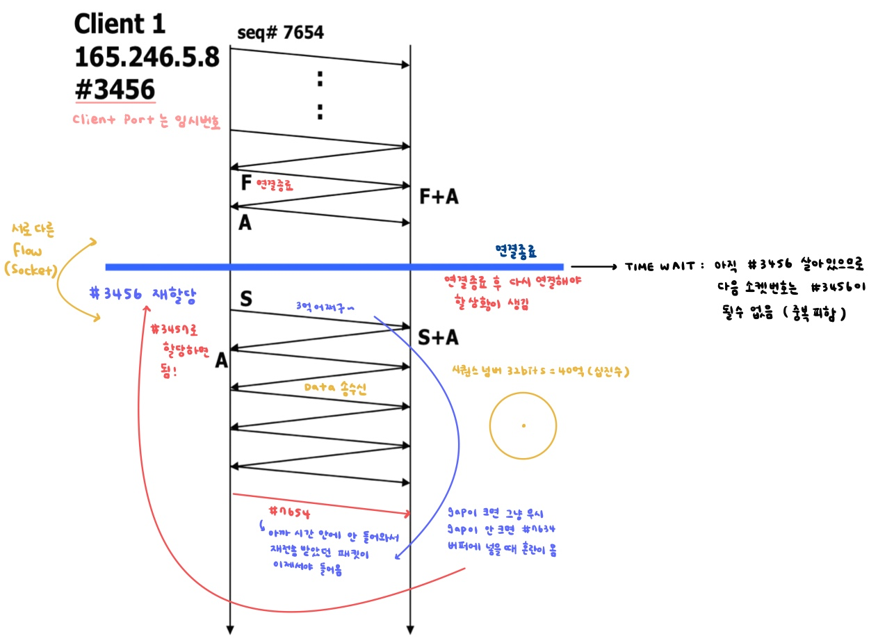 이를 방지하기 위해 TIME-WAIT을 이용해 #3456를 살려두고 다른 PORT번호를 배정받는다.