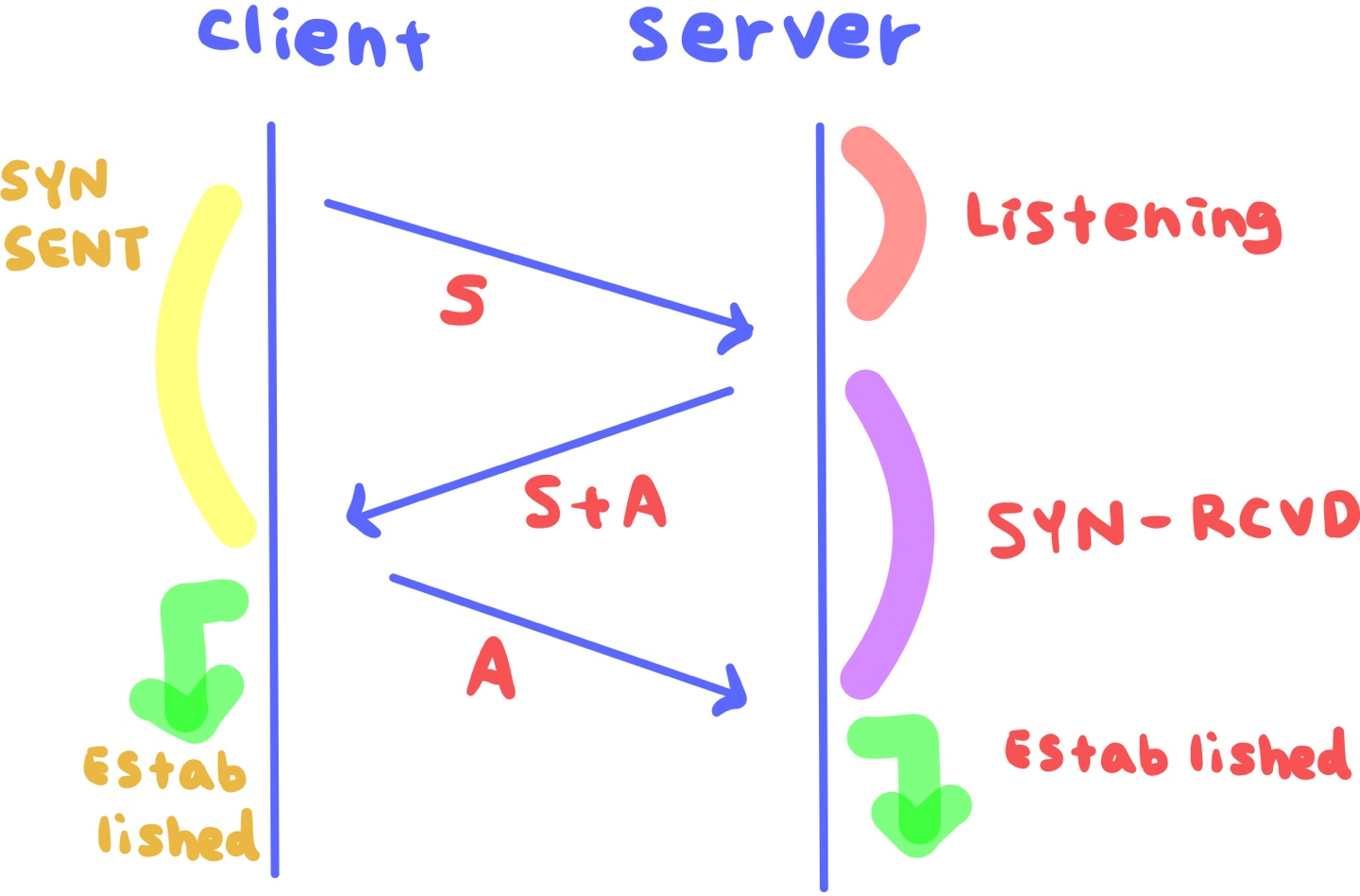SYN+ACK / ACK 서버로부터 SYN+ACK이 오면 서버에게 ACK를 전송