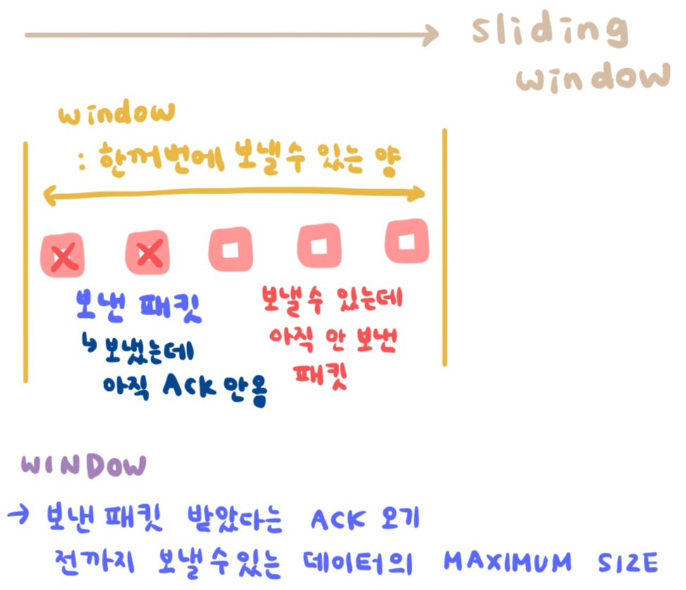 - 오른쪽 edge가 오른쪽으로 이동할 때까지 보낼 수 없는 bytes