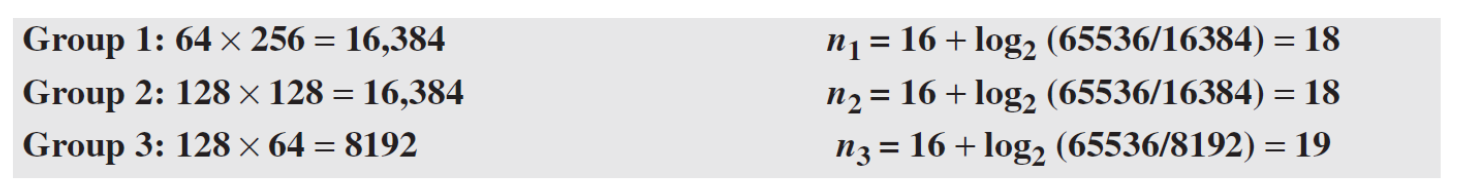 첫 번째 단계에서는 각 그룹에 주소의 서브블록을 할당한다. 각 그룹에 할당된 총 주소 수와 각 하위 블록의 prefix 길이는 다음과 같다.