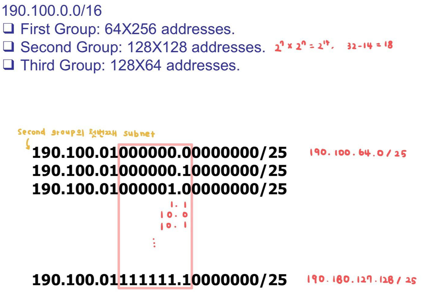 ■ 두 번째 그룹은 128명의 고객을 보유하고 있으며, 각각 약 128개의 주소가 필요하다.