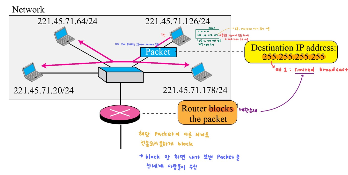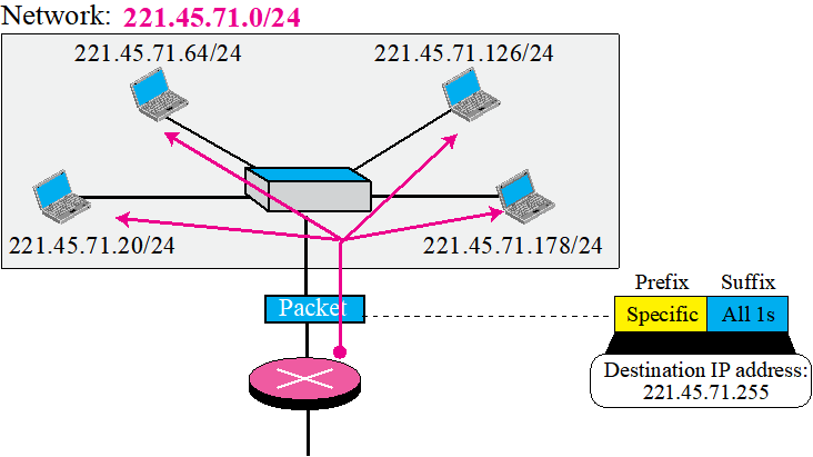 - Destination IP address: 221.45.71.255 ☞ suffix가 모두 1인 주소