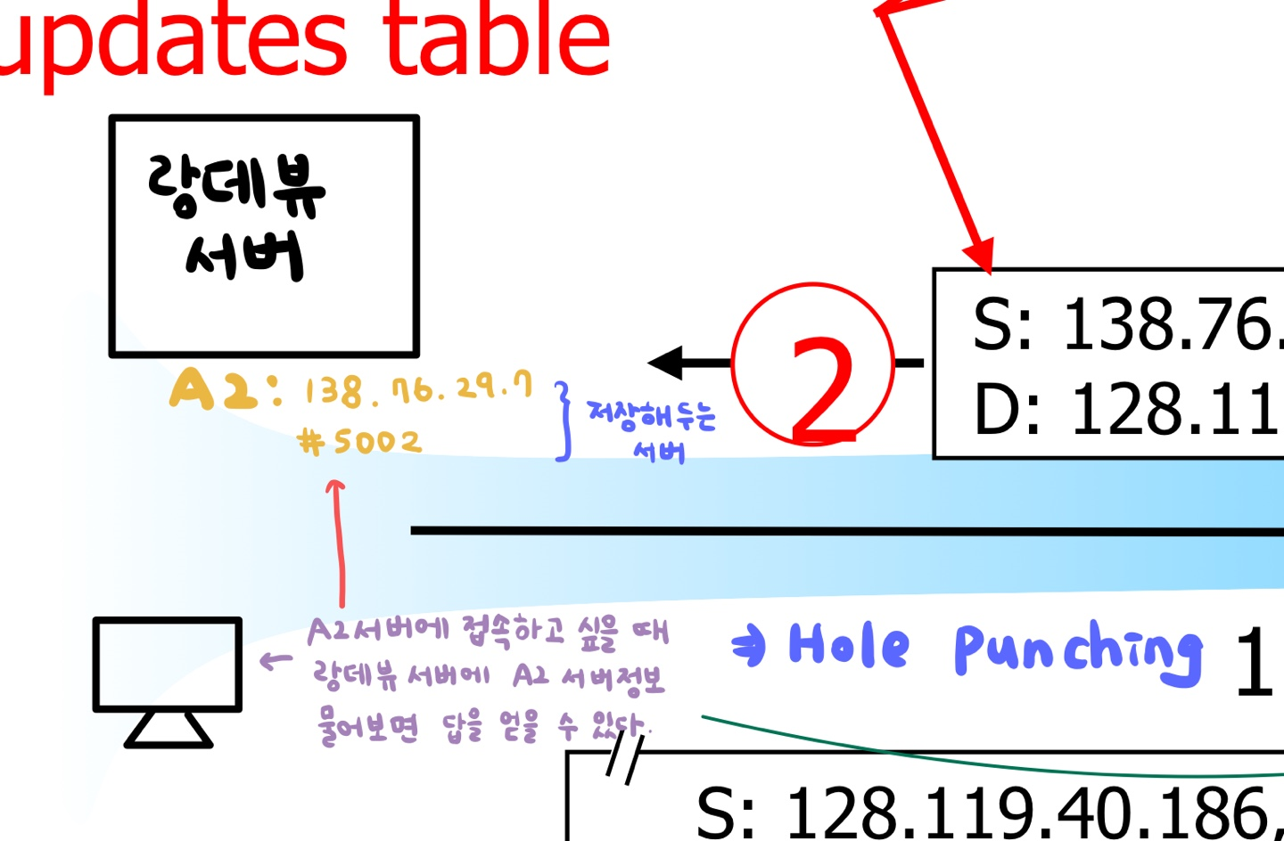 - 이러한 기술을 Hole punching이라 한다. (해당 기술을 이용한 다른 예: IP전화기)