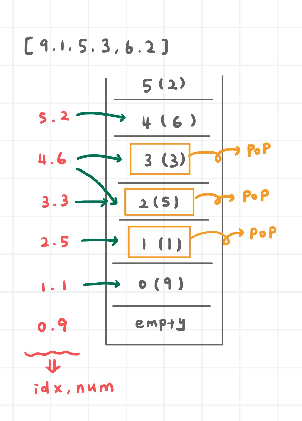 arr[pop한 스택 idx]에 새로운 수를 대입한다.