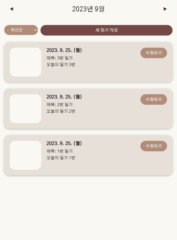 | [React] 꿈 일기 기록 사이트 제작 일지-5. 일기 정렬 기능 및 페이지 이동 버튼 구현 (0) | 2023.09.25 |