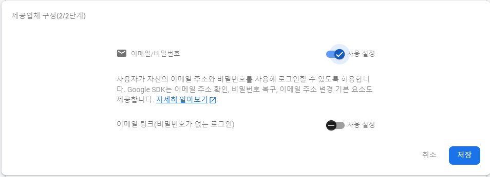 이메일로 회원가입을 진행할 예정이므로 이메일/비밀번호를 선택했다.