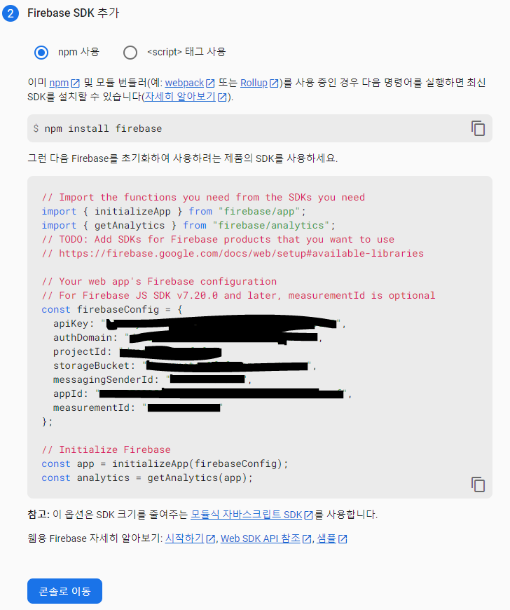 이 과정에서 발생한 missing app configuration value: "projectid" 에러 처리는 아래 접어두기란에 있다.