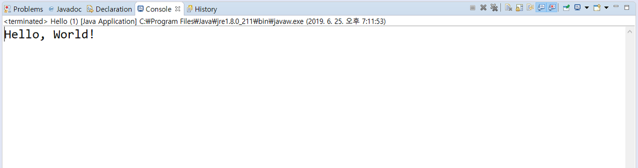 System.out.println("Hello, World!"); //화면에 글자를 출력.
