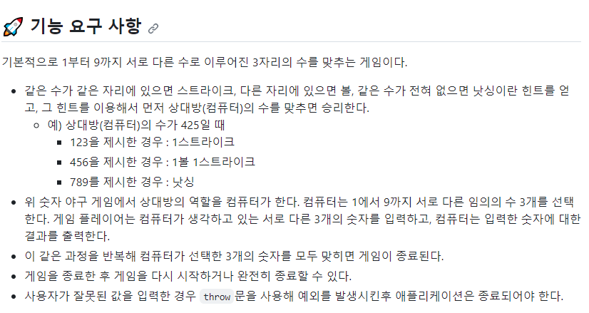 테스트 코드를 처음 접해보았기에 처음에는 테스트 케이스를 어떻게 사용해야 하는지 알지 못했다. 그래서 늘 하던 대로 코드를 구현하며 중간중간 node App.js 실행을 통해 직접 사용자의 답변을 입력해 출력을 확인하였다. 이러한 방법으로 제가 상정해 두었던 모든 예외를 통과한 코드를 모두 구현하였지만, 막상 npm test를 통해 테스트 케이스 검증을 해 본 결과 테스트 케이스 도중 'Error: [ERROR] 숫자가 잘못된 형식입니다.'라는 에러가 발생하며 도중에 테스트 실행이 종료되는 현상이 발생했다... 이를 해결하기 위해 while문을 재귀로 바꾸어보고 코드 분리도 해보고 전체적인 코드 수정도 진행해 보았지만 아쉽게도 테스트케이스는 통과하지 못했다.