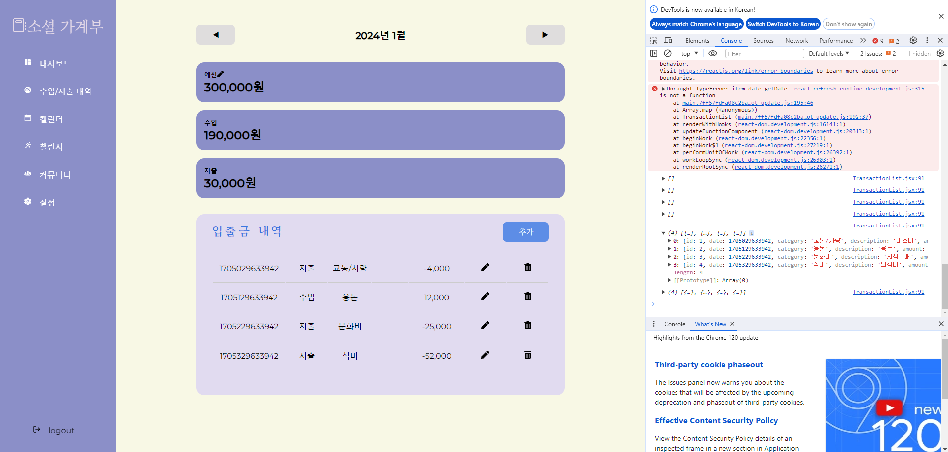 따라서 부모 컴포넌트의 `data`가 바뀔 때마다 `transactionData`도 최신 값으로 변할 수 있도록 useEffect를 사용하여 에러를 해결했다.