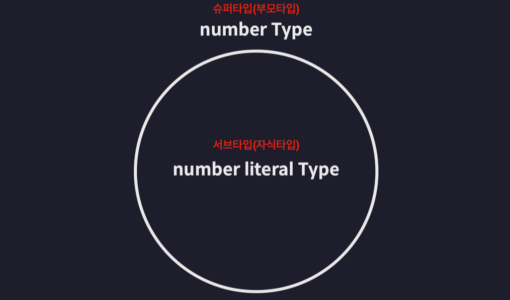 Number 타입이 Number 리터럴 타입의 슈퍼 타입이므로, Number 리터럴 타입을 Number 타입으로 취급하는 것은 가능하나 Number를 Number 리터럴 타입으로 취급할 수는 없다.