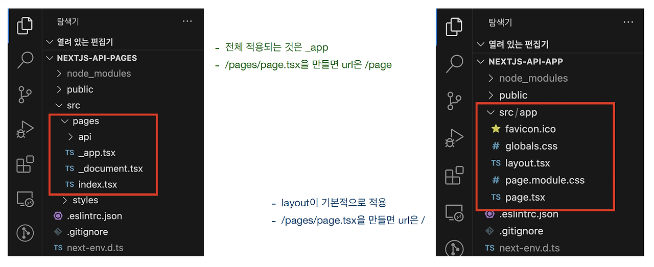 반면 Next.js는 파일 시스템 기반의 라우팅을 제공하여 URL 경로와 파일 구조가 일치하도록 합니다. 이로 인해 라우팅 설정이 더 간편해집니다.