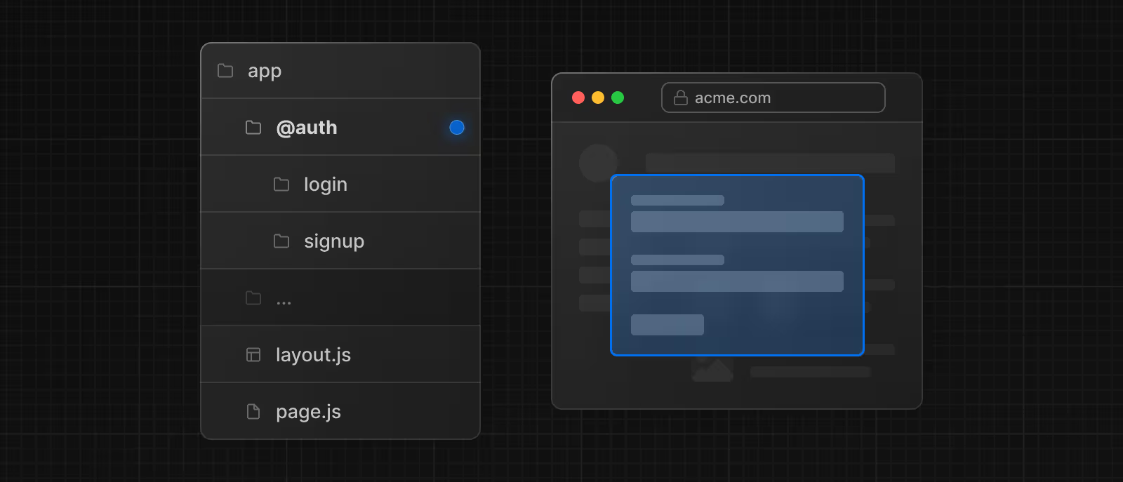 예를 들어, 다음과 같은 폴더 구조는 @analytics, @team이라는 두 개의 슬롯을 정의한다.