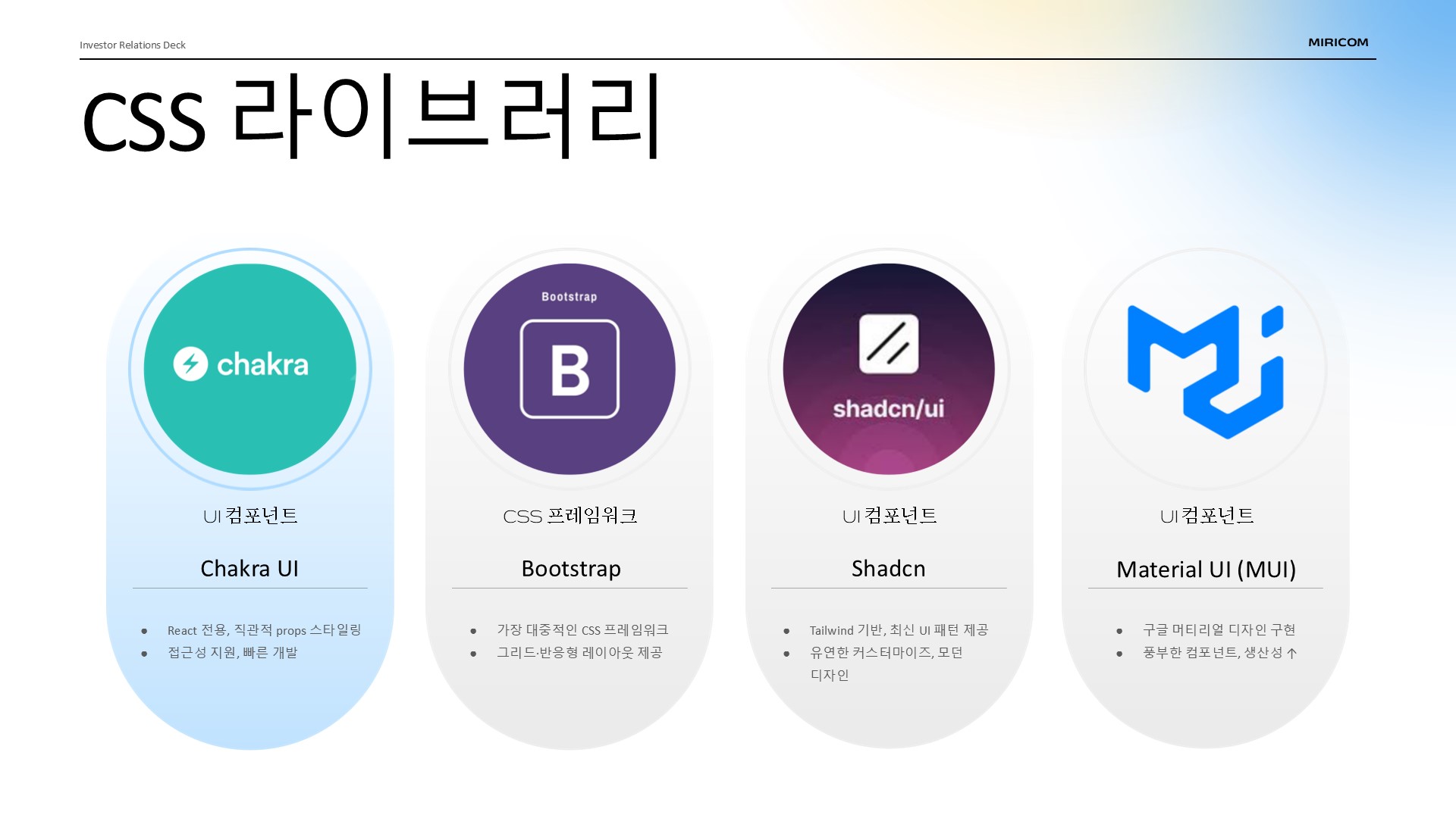 이제까지 네 가지 대표적인 CSS 라이브러리를 살펴봤습니다.